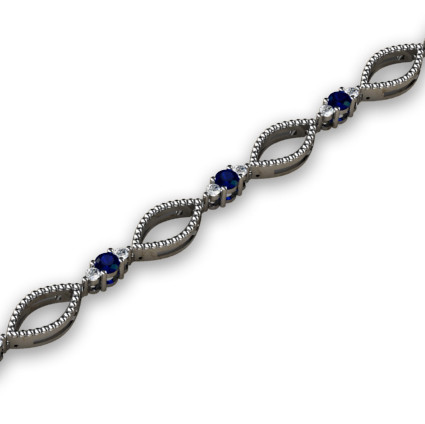 - 1.52ct t.w Diamond and Sapphire Fashion Bracelet in 14k White Gold