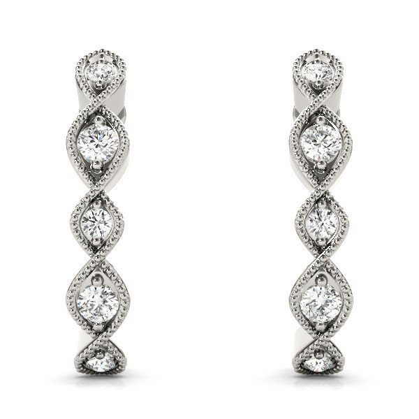 This stunning fashion earring features 3 sparkling Diamonds with approximately .15ct tw Natural Green Diamond at the bottom. Set in 14k White Gold. Available in series.