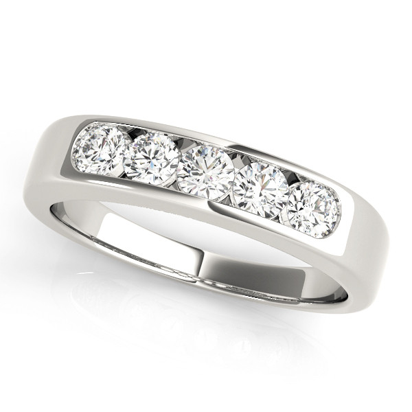A beautiful five stone diamond ring channel wedding band set with approximately 1ct tw of diamonds set in 14k white gold 4.59grams available in yellow or rose gold , perfect for worn alone or as a matching band to an engagement ring.