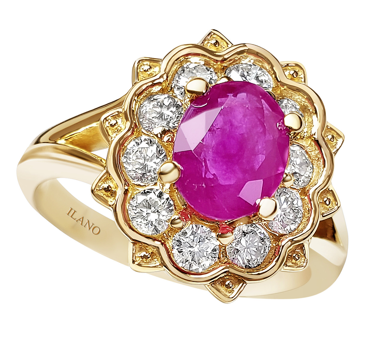1ct ruby y set with 1/2 ct LAB GROWN DIAMOND SETI IN 14K YELLOW GOLD