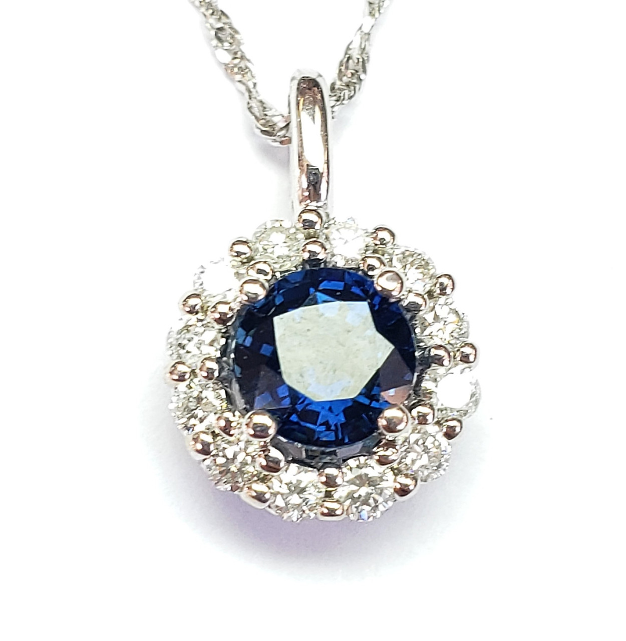 .90ct sapphire and .25ct diamond pendant set in14k white gold