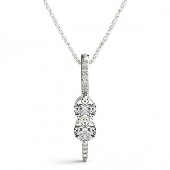 - Two-Stone Diamond single row Pendant in 14k White Gold (1/5ctw)