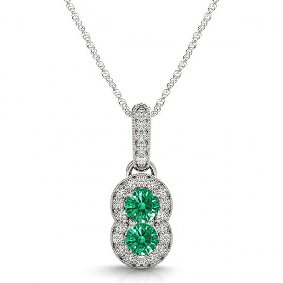 - Two-Stone Emerald and Diamond Pendant (.75ctw)