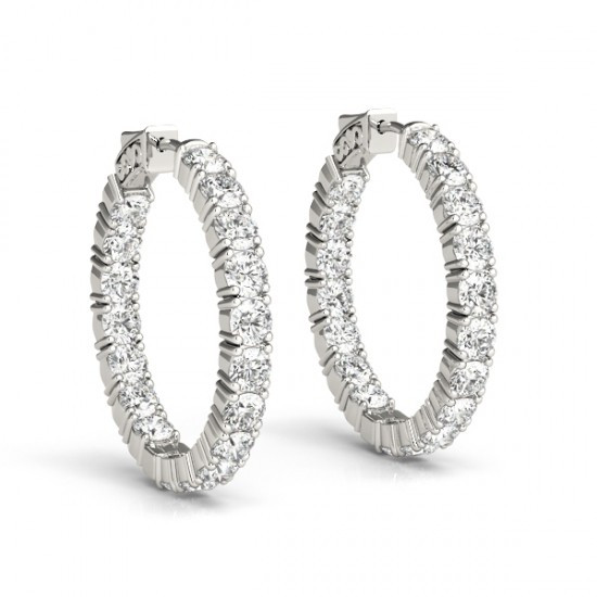 This beautiful diamond hoop earring features 40 round sparkling diamonds in a hoop setting for a total carat weight of 2.00cts. Can be set in 14k White,Yellow, or Rose Gold.