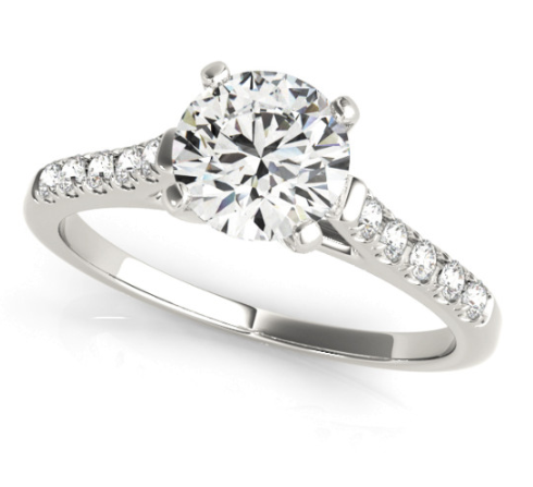 This beautiful engagement ring single row prong set design features 10 sparkling Natural Diamonds surrounding the 1/2 ct Diamond at the center. Set in 14k