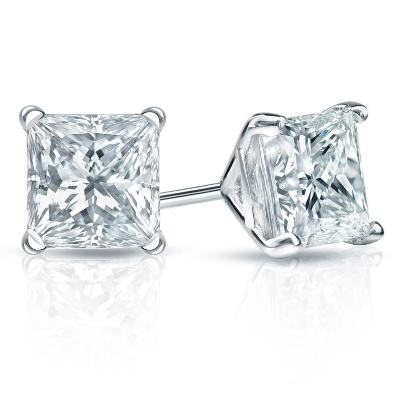 - 14k Gold Princess Cut Diamond Earring studs 2ct t.w. (2ct)