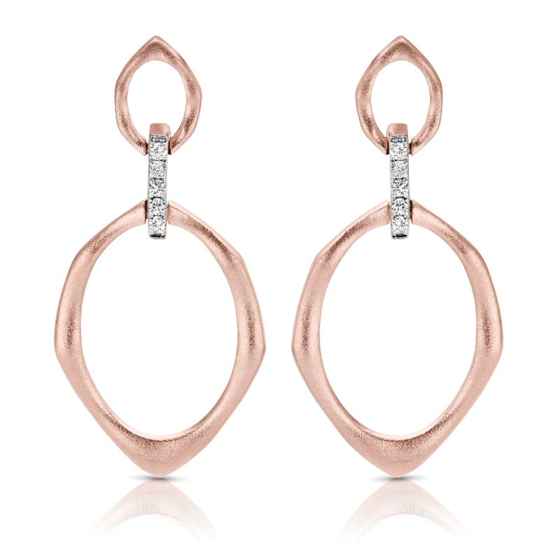 - 14K ROSE EARRINGS;DIAMOND=1/20 CTTW