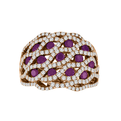 - 14k Rose Gold Purple and White Diamond Fancy Flower Ring (2.22ct t.w)