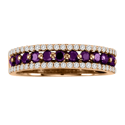This stunning ring from our "Purple Diamond" collection features 12 purple diamonds (.53ct) along with 48 White Diamonds (.30ct) in a single row setting. Set in 14k Rose Gold.