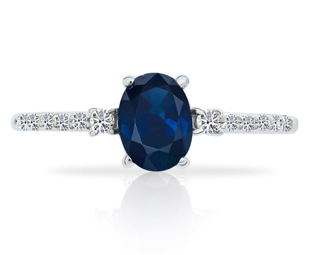 - 14K W SAPPHIRE & DIAMOND RING