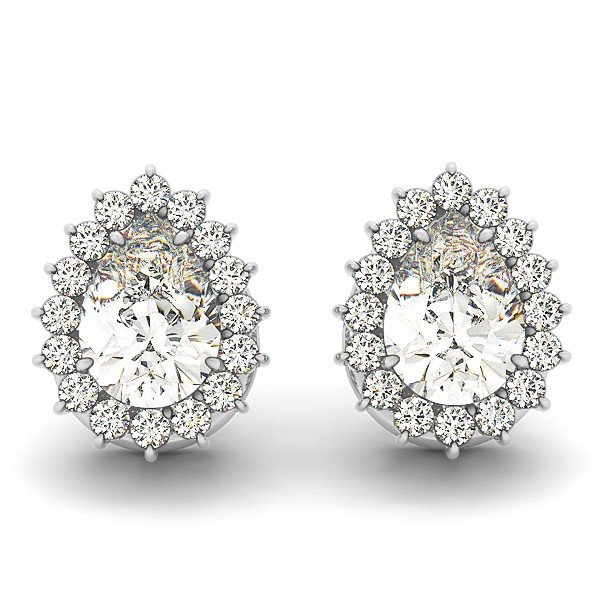 These stunning Pear Shape Diamond Earrings feature two(2) Pear Shape Diamonds(.50ct t.w) surrounded with 24 sparkling white diamonds (.24ct t.w). Set in 14k White Gold.