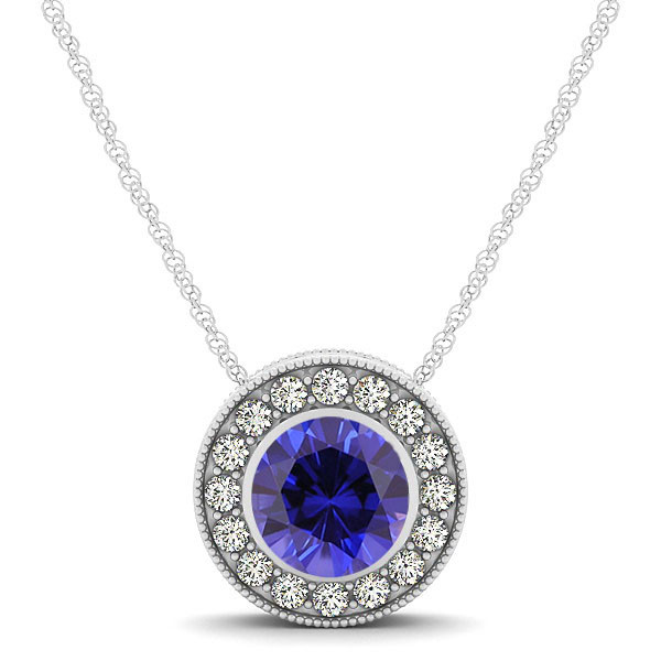 - 14k White Gold Round Sapphire and Diamond Circle Pendant (.79ctw)
