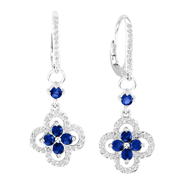 - 14k White Gold Sapphire Flower Earrings (1.52ct t.w)