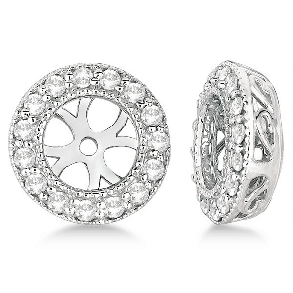 - 14k White Gold Vintage Round Cut Diamond Earring Jackets (0.27ct)