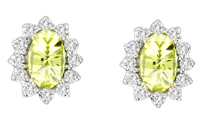 - 14k White Gold Yellow Diamond Oval Earrings (2.15ct t.w)