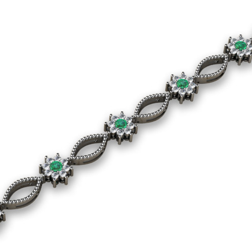 This stunning cluster bracelet from our new ILANO Collection features 8 Emeralds(1.60ct t.w) along with 64 sparkling white diamonds(1.28ct t.w) in a beautiful cluster fashion setting. Set in 14k White Gold