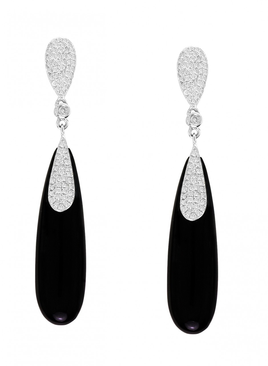 Beautiful Black Agate Earrings with Diamonds set in 14k White Gold