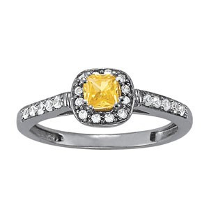 - Cushion cut Citrine Diamond ring set in 14k White Gold (.16ct)
