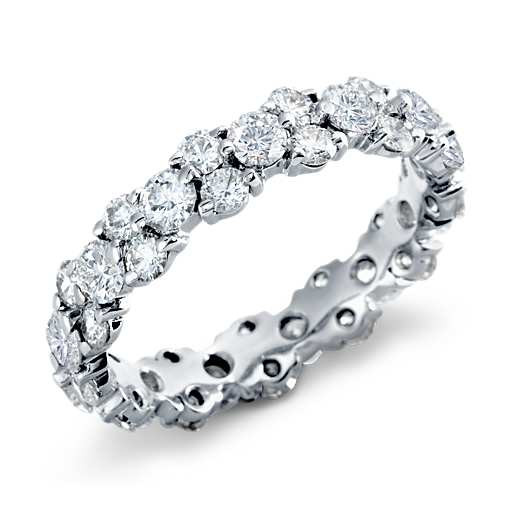 Continuous Band of Diamonds features pairs and single prong set round Diamonds