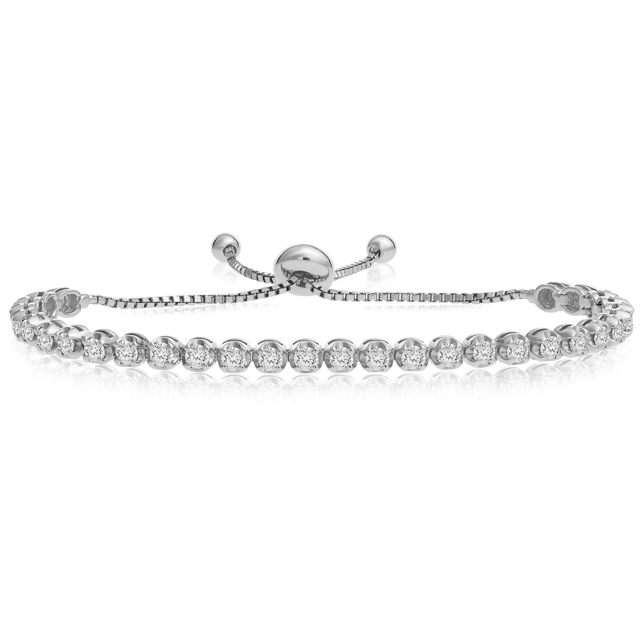- "One-Size-Fits-All" Round Diamond Adjustable Tennis Bracelet in 14k White Gold (1.50ctw - 4.00ctw)