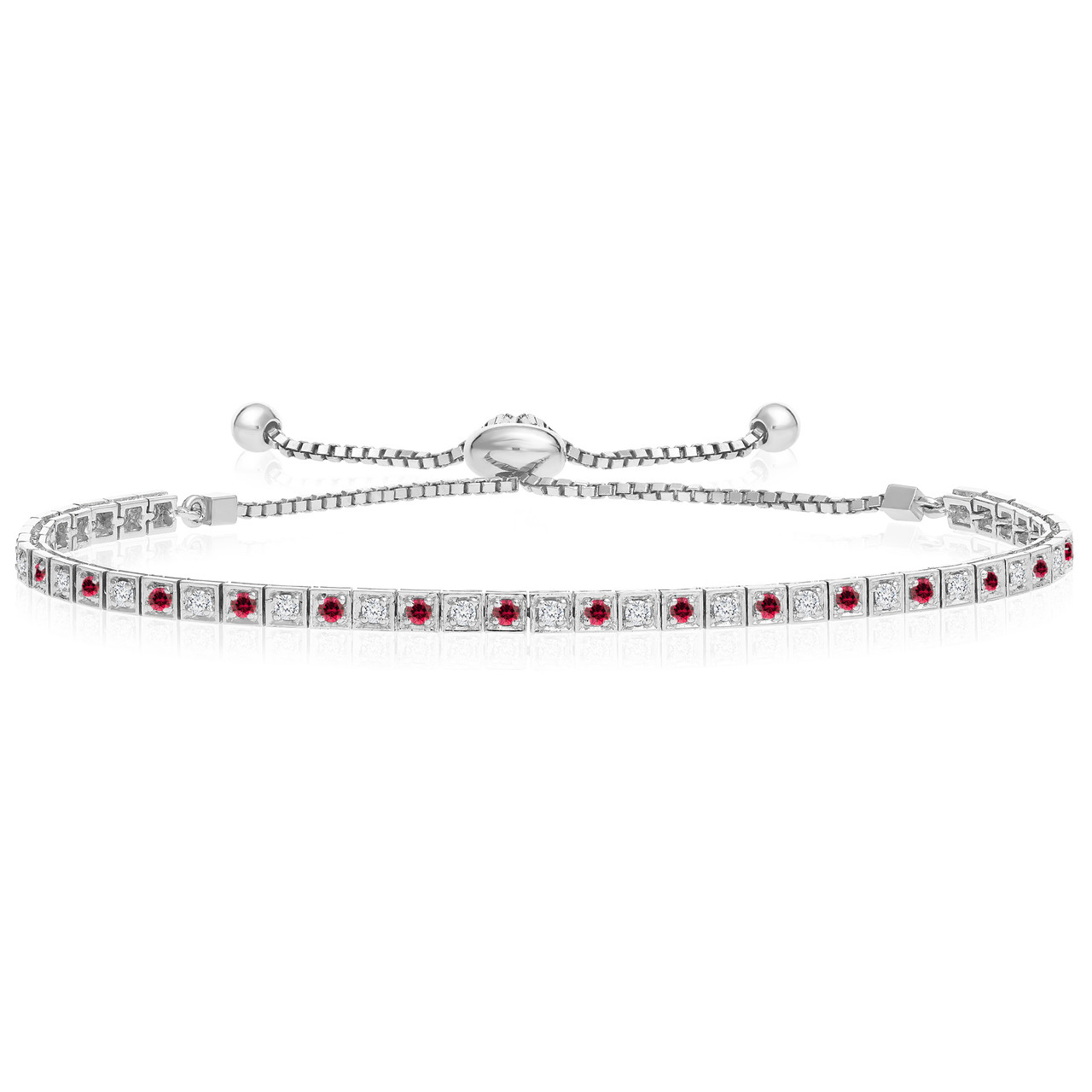 - "One-Size-Fits-All" Round Ruby and Diamond Adjustable 'Box' Tennis Bracelet in 14k White Gold (.88ctw)