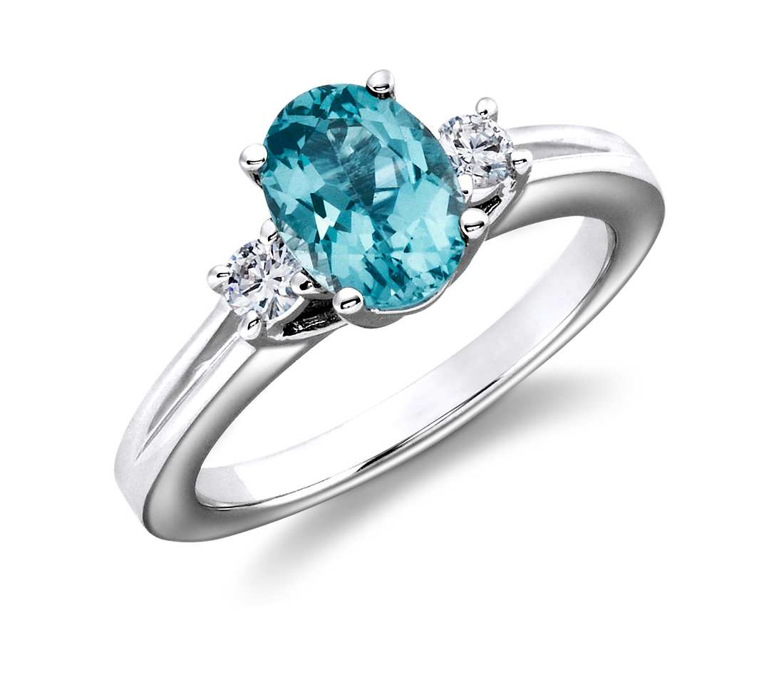 - Oval Blue Topaz and Diamond Ring set in 14k White Gold (8x6mm - 1.60ct)
