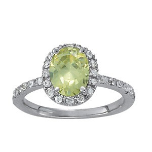 - Oval Green Amethyst ring set in 14k White Gold (.28ct)