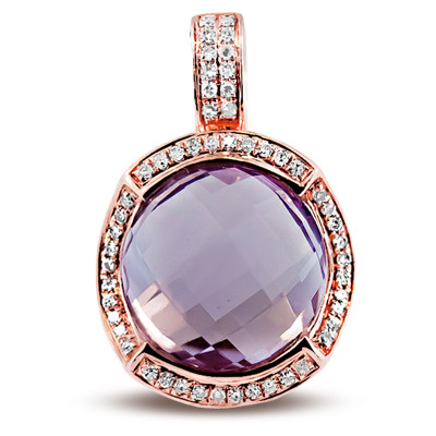 This beautiful Pink Amethyst has 52 diamonds (.16ct) surrounding the pink amethyst gemstone (5.48ct)
