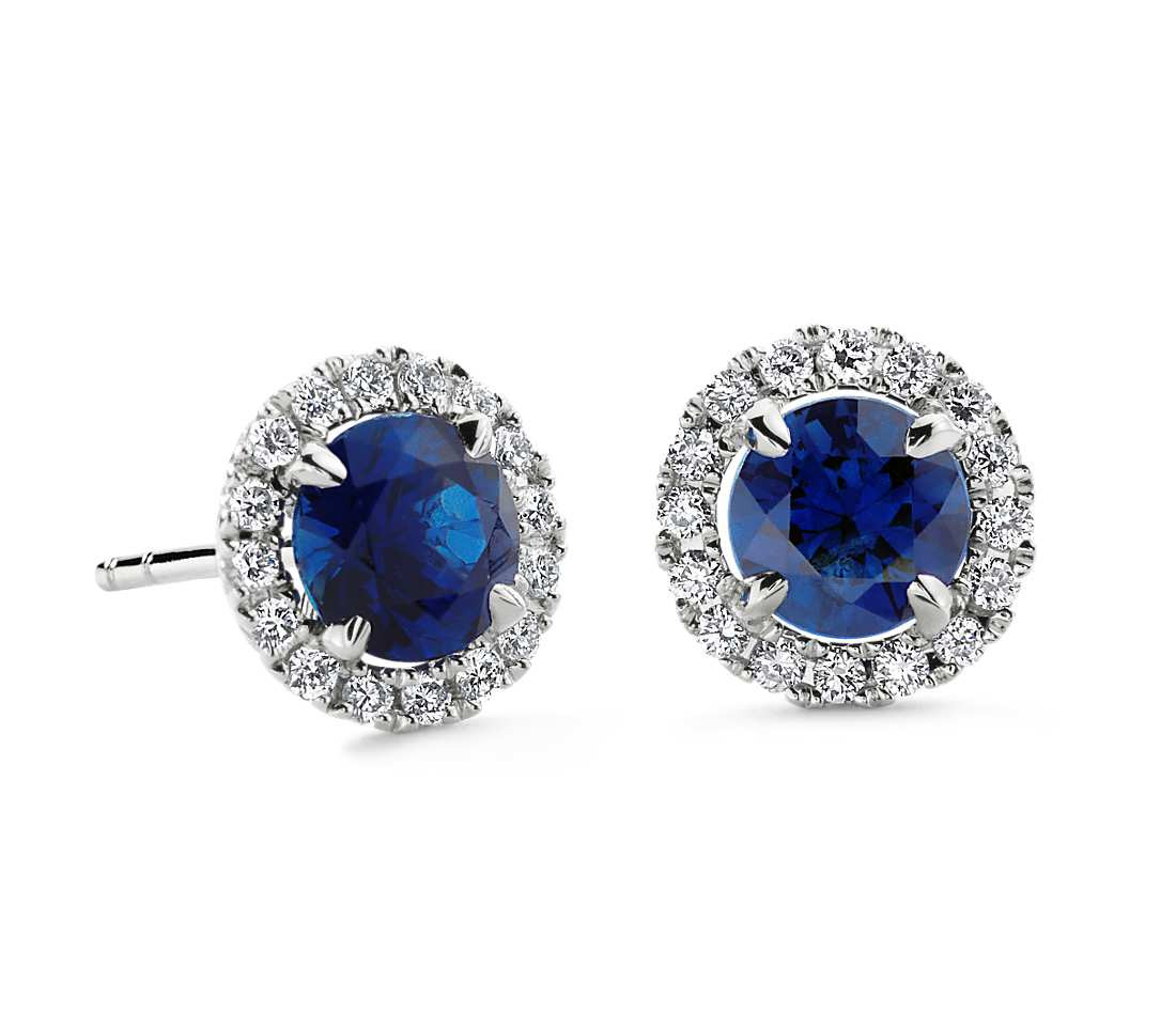 - Round Sapphire and Diamond Earring in 14k White Gold (5mm - 1.30ct t.w)