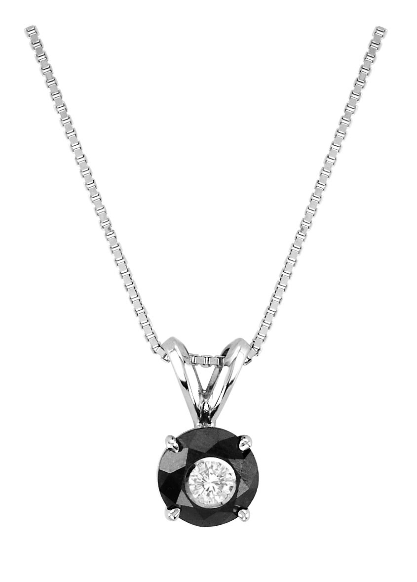 This stunning pendant is part of our "Tuxedo Collection" set. Featuring a black diamond drilled at the center and filled with a sparkling white diamond for a total carat weight of 1.00ct. Set in 14k white gold.