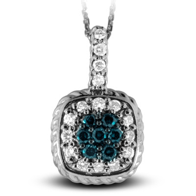 White Gold Pendant With Blue center diamonds and White surrounding Diamonds.