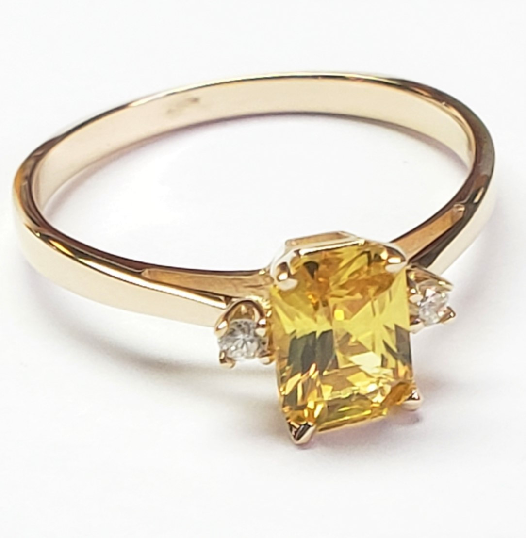 1ct t,w Yellow Sapphire and .05ct diamonds set in 14k gold